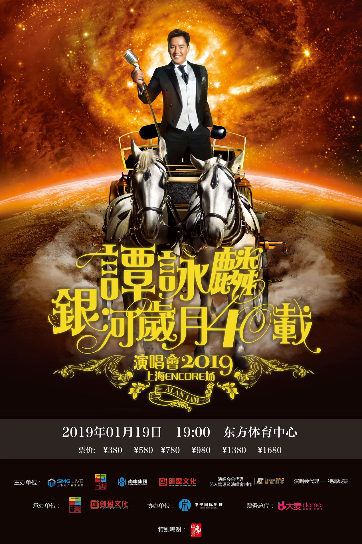 由上海尚申集团、SMG、上海创盈文化、东演文化联合呈现的谭咏麟“银河岁月40载”演唱会上海站,于2019年1月19日在上海东方体育中心完美收官。
